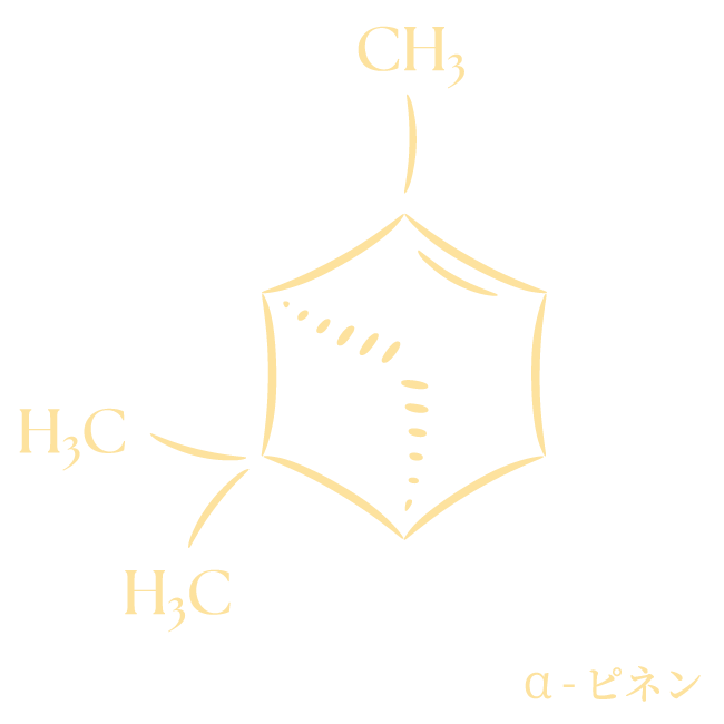 ヒノキの香りに含まれ「α-ピネン」は、心身をリラックスさせ、疲労回復や安眠を促す効果を持っていることが立証されています。